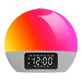 منبه توقيت ذكي بإضاءة شفقية لغرف نوم الأطفال والكبار مع محاكاة شفق الشمس 22 طبيعية بصوت طاولة ساعة رقمية