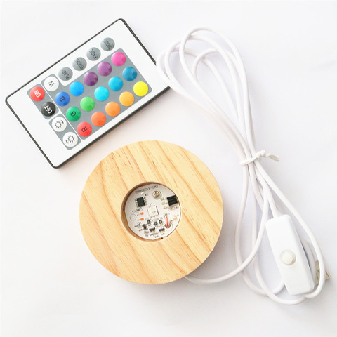 Base luminosa de madera maciza de haya ovalada, luz LED de noche pequeña, cristal acrílico, Control remoto táctil, iluminación que cambia de Color